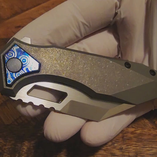 - Handle Material: Made from 6AL4V titanium, often finished in gray or stonewashed tones. Some variants include exotic materials like Zircuti or colored titanium with speedholes.