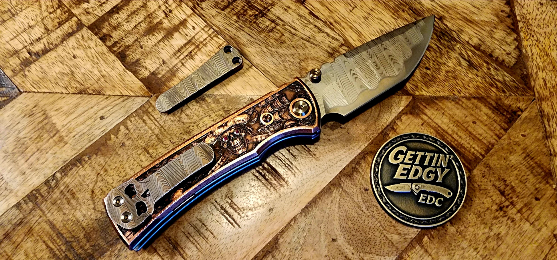 - Both clips and blade were deep-etched, glass-blasted, and bronzed.***