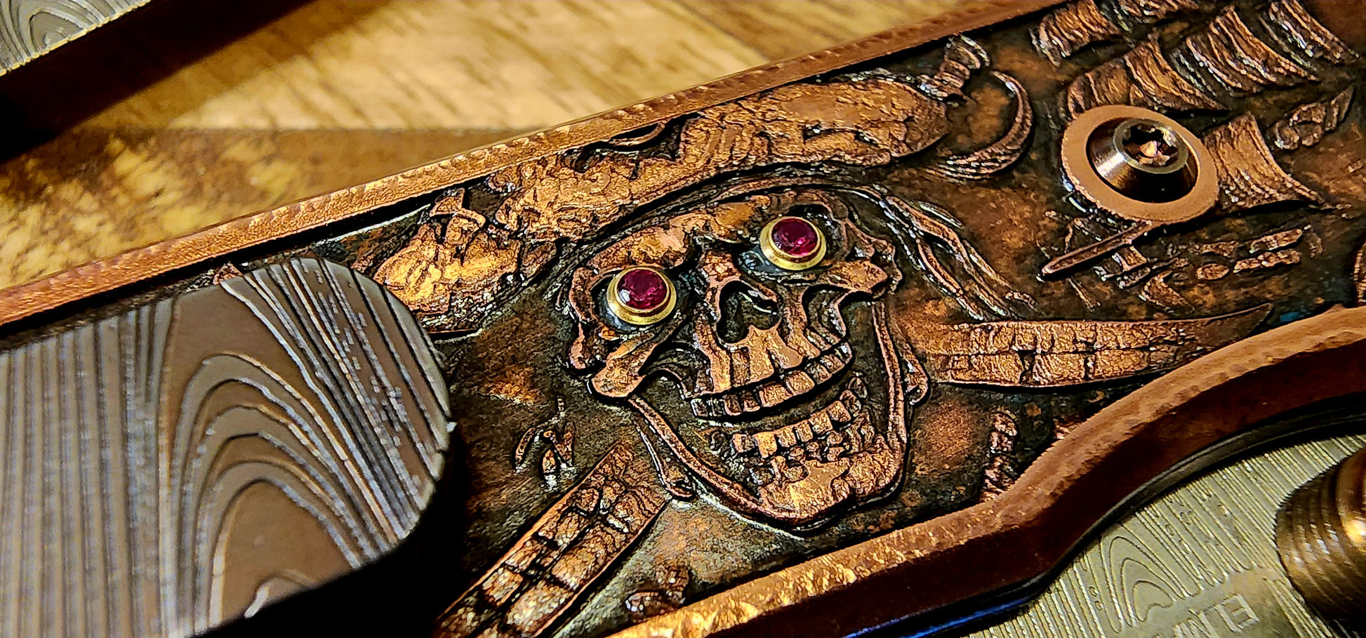 - Scales were designed, deep-engraved, hand- finished, antiqued, and clear-coated by site owner.