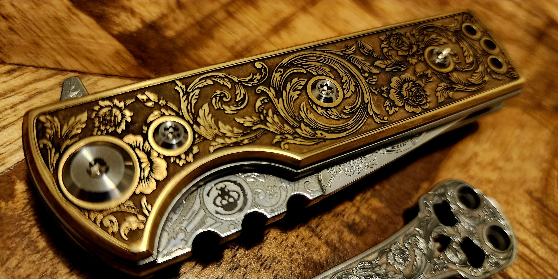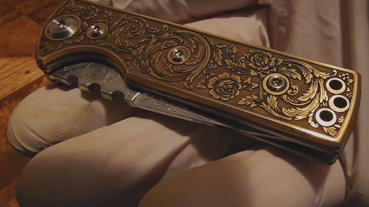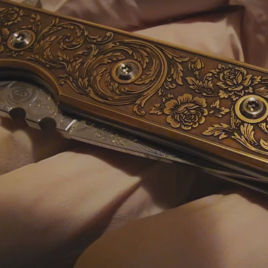 - Both clips and the blade were deep-etched in a matching pattern, and polished.