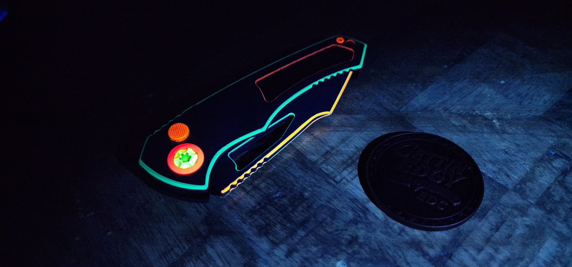 Heretic Knives 80's Neon CEL Shade Pariah, Manual Button-Lock Folder - Pre-Owned